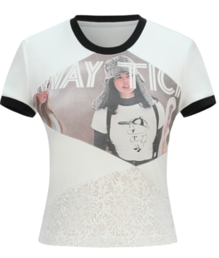 블랙 라이닝이 가미된 프린트 티셔츠에