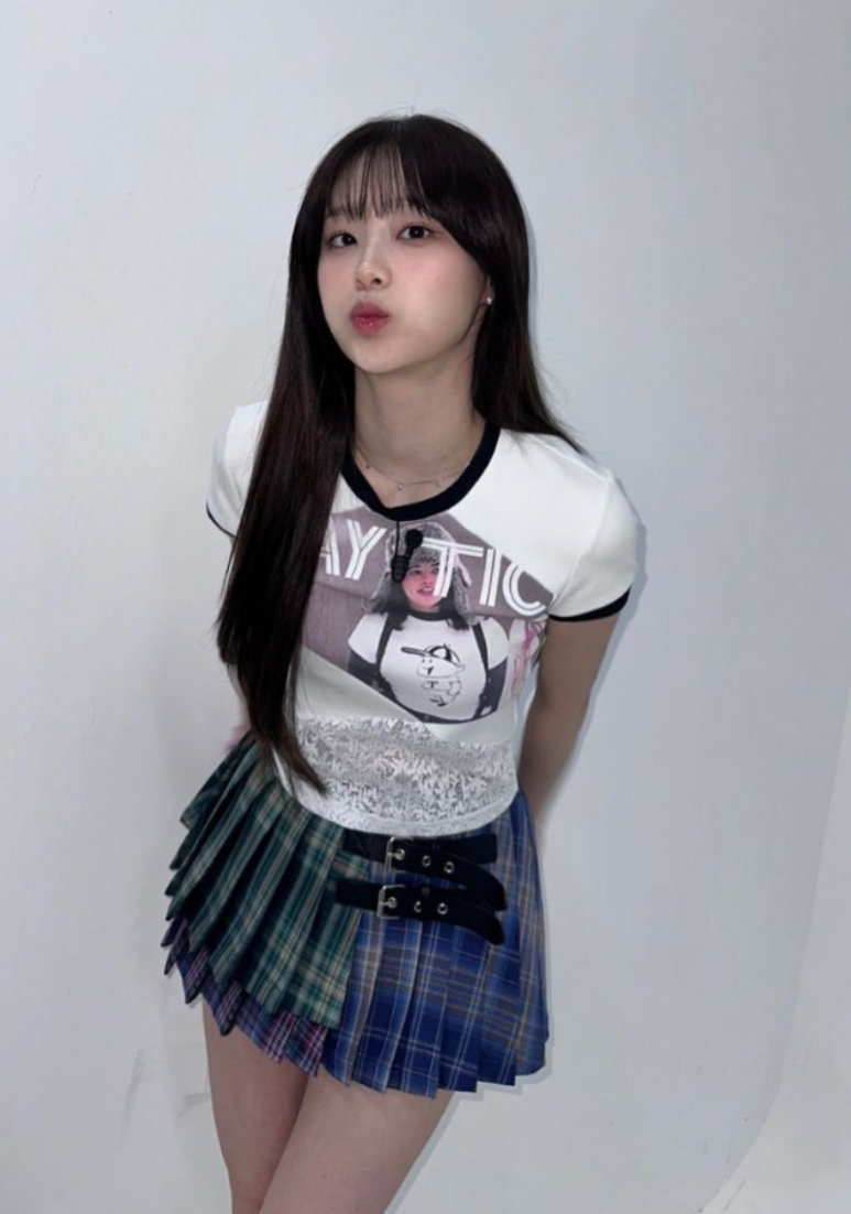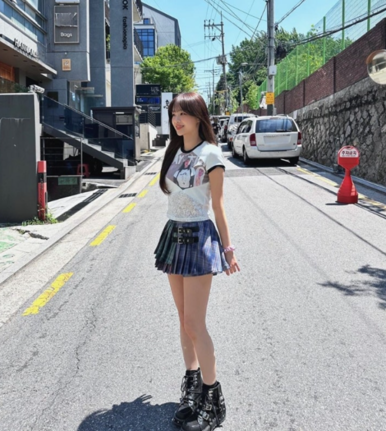 장원영처럼 티셔츠를 넣어 스타일링하는 것이