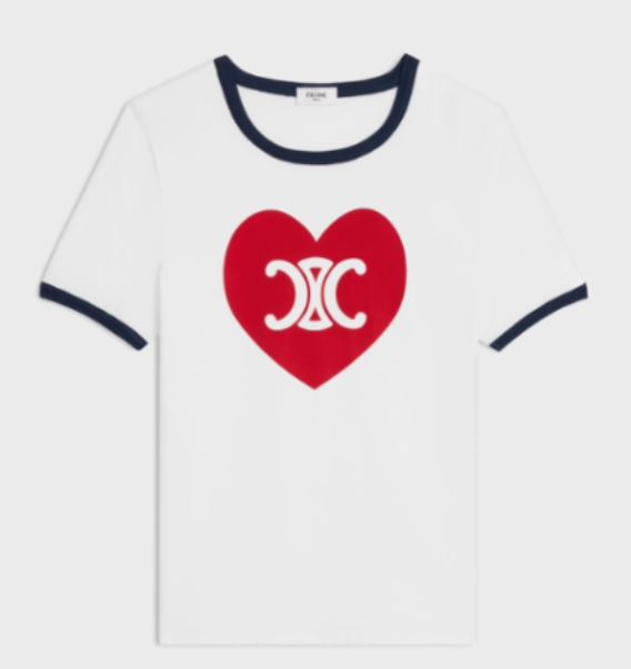 커다란 하트와 로고가 돋보이는 링거 티셔츠에
